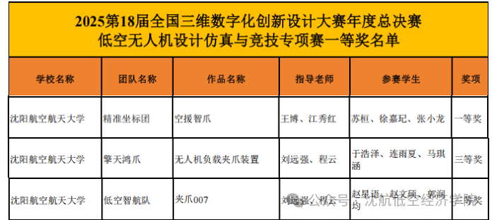 学院始终重视学生科技创新与实践能力培养,构建“以赛融教、以赛强能”的培养机制,将学科竞赛与课程教学、产业需求紧密结合。未来,学院将继续深化“学科竞赛—科研项目—产业应用”联动机制,推动低空经济领域人才培养与技术创新,为我国低空产业高质量发展持续注入“沈航力量”。